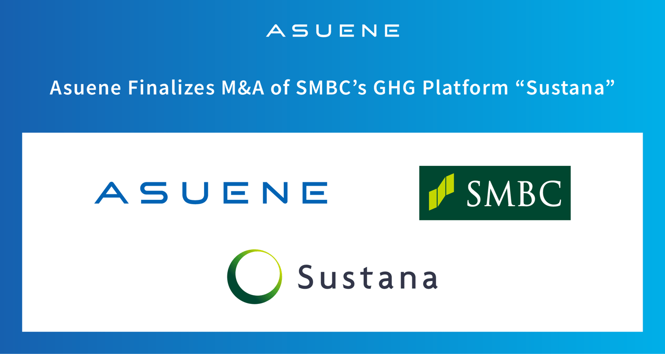 Asuene announced in May 2025 its intention to acquire SMBC’s “Sustana” and integrate the platform with its own carbon accounting platform “ASUENE.” The acquisition, part of a broader capital and business alliance with the SMBC Group, was completed on July 15, 2025.