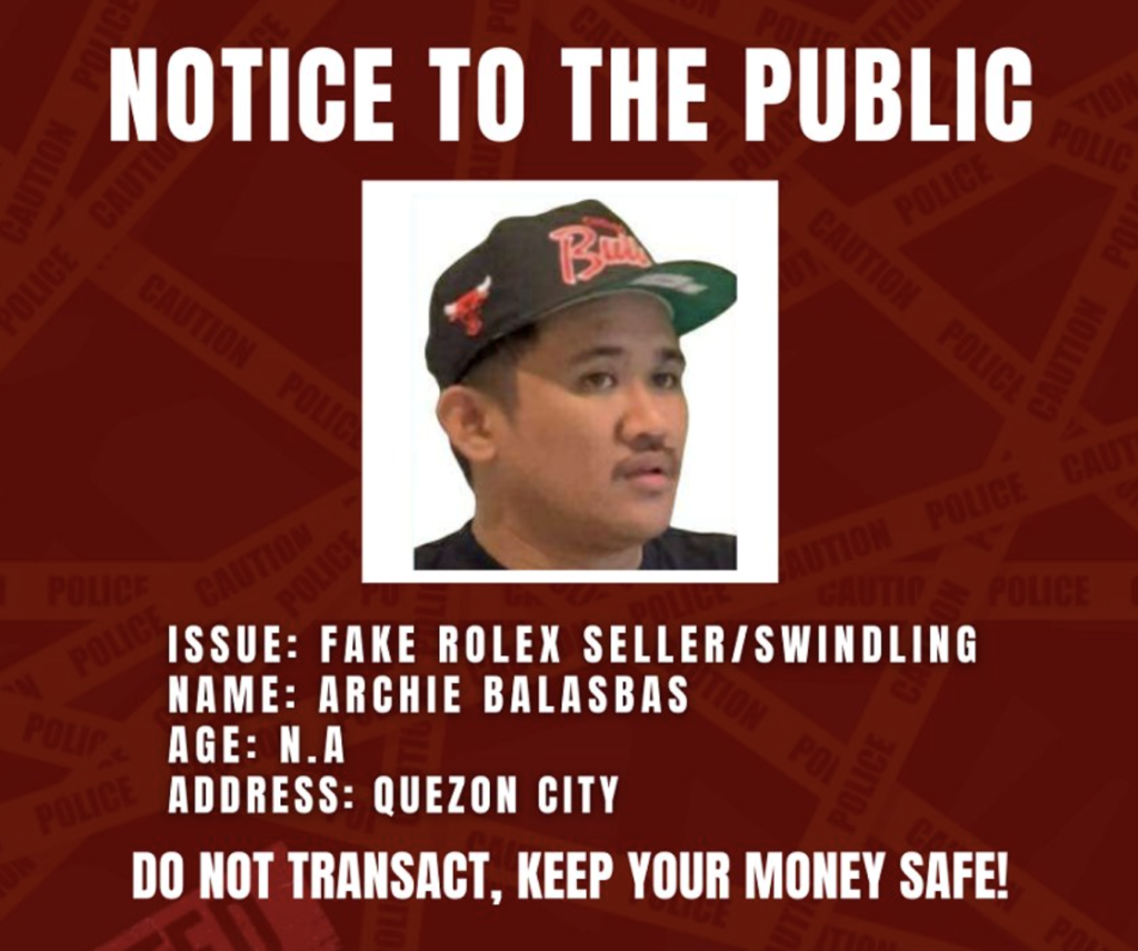 Another case circulating online involves Archie Balasbas, also identified as a seller of counterfeit Rolex watches. Reports from at least five victims reveal losses amounting to approximately ₱3.5 million.
