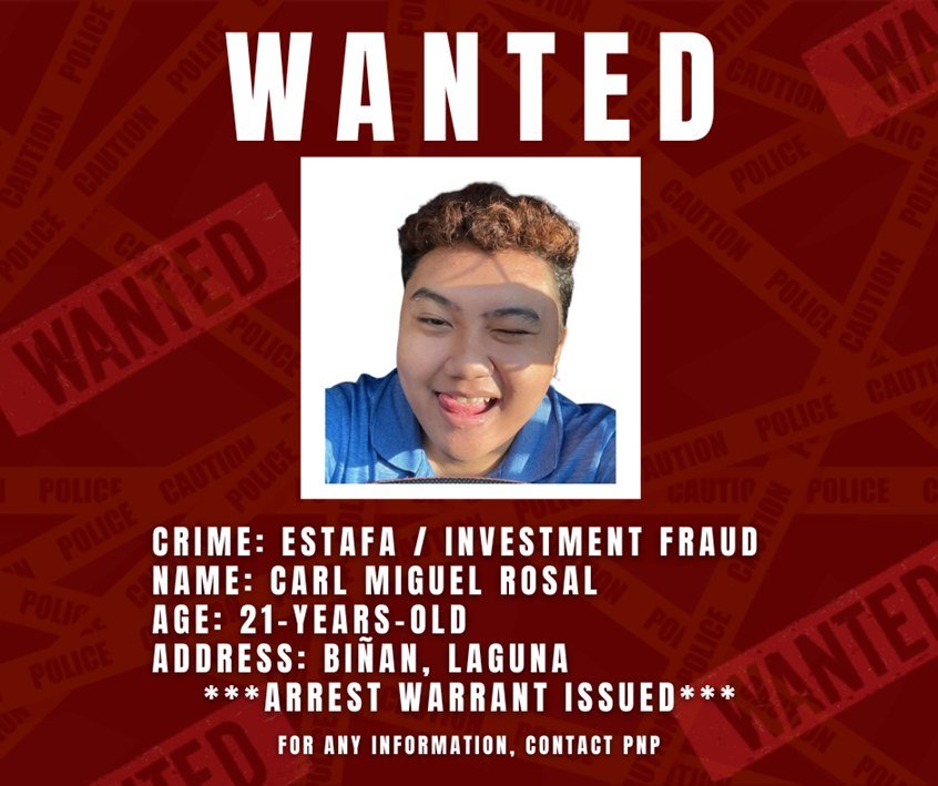 A wanted notice was issued for 21-year-old Carl Miguel Rosal, accused of selling counterfeit Rolex watches amounting to a total of ₱2.5 million from multiple victims.