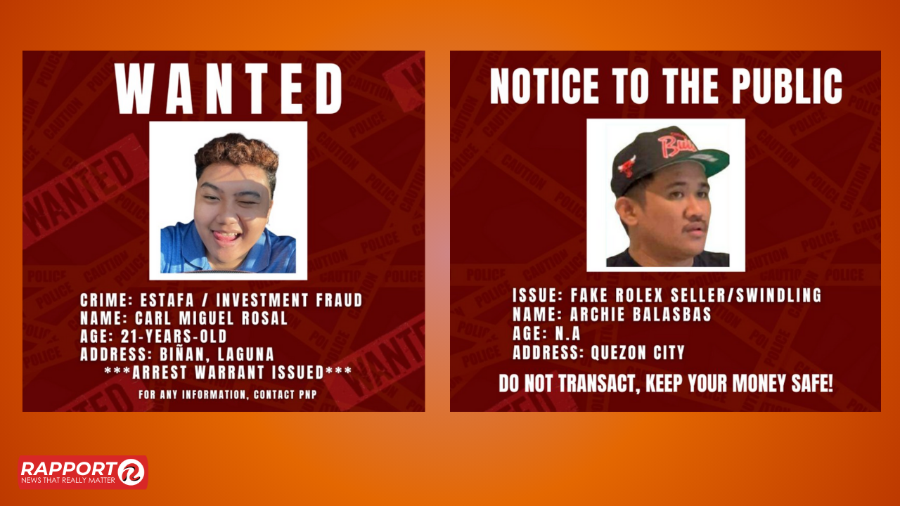 A wanted notice was issued for 21-year-old Carl Miguel Rosal, accused of selling counterfeit Rolex watches amounting to a total of ₱2.5 million from multiple victims.