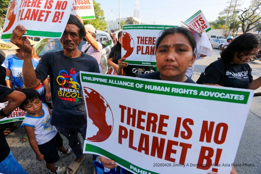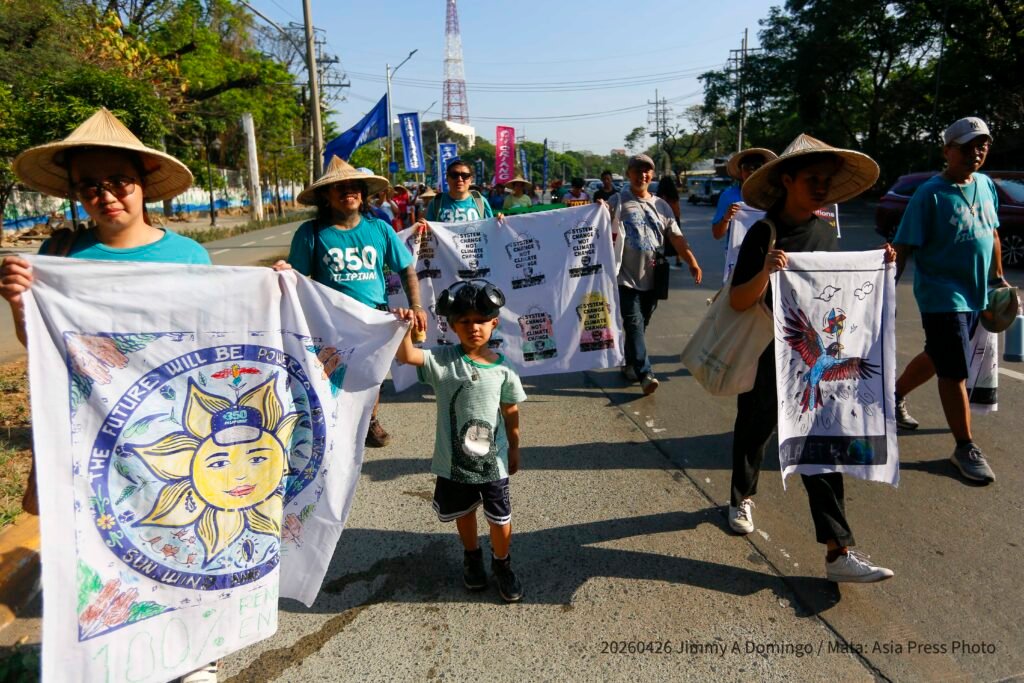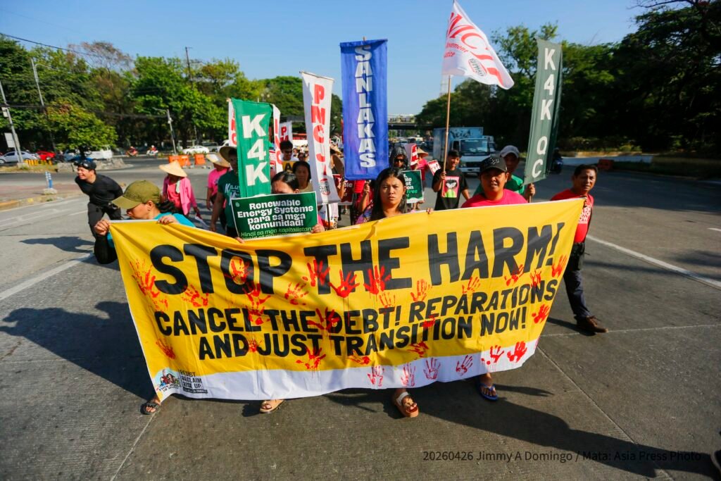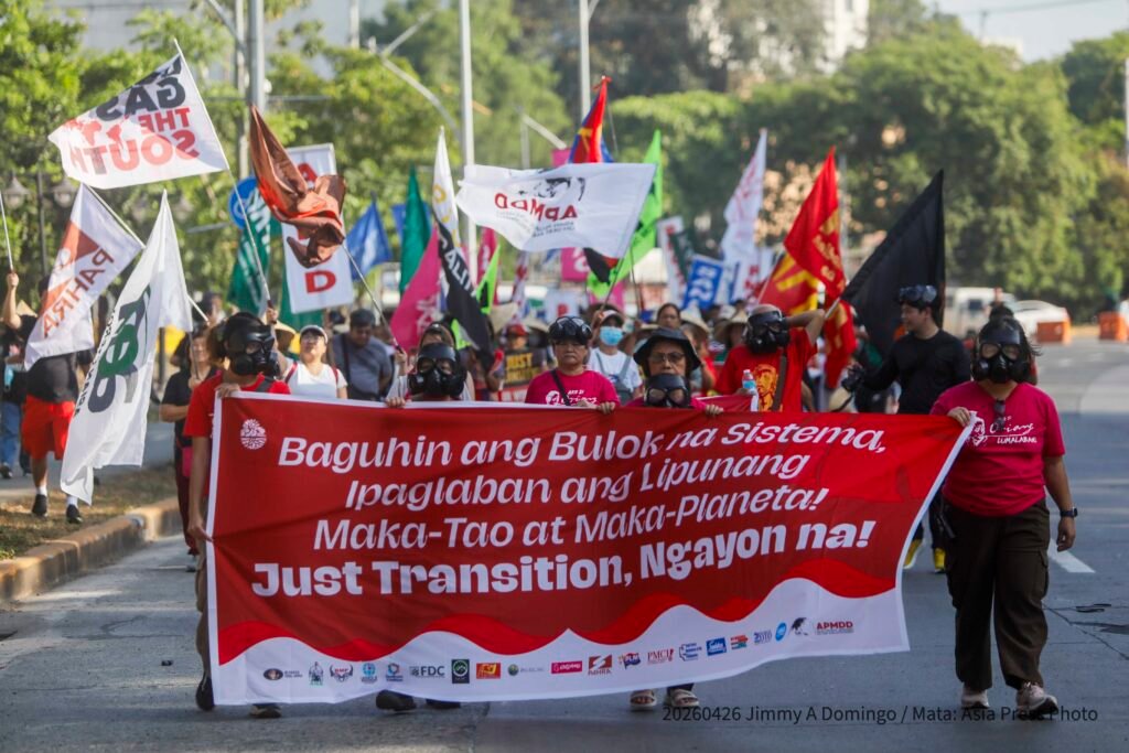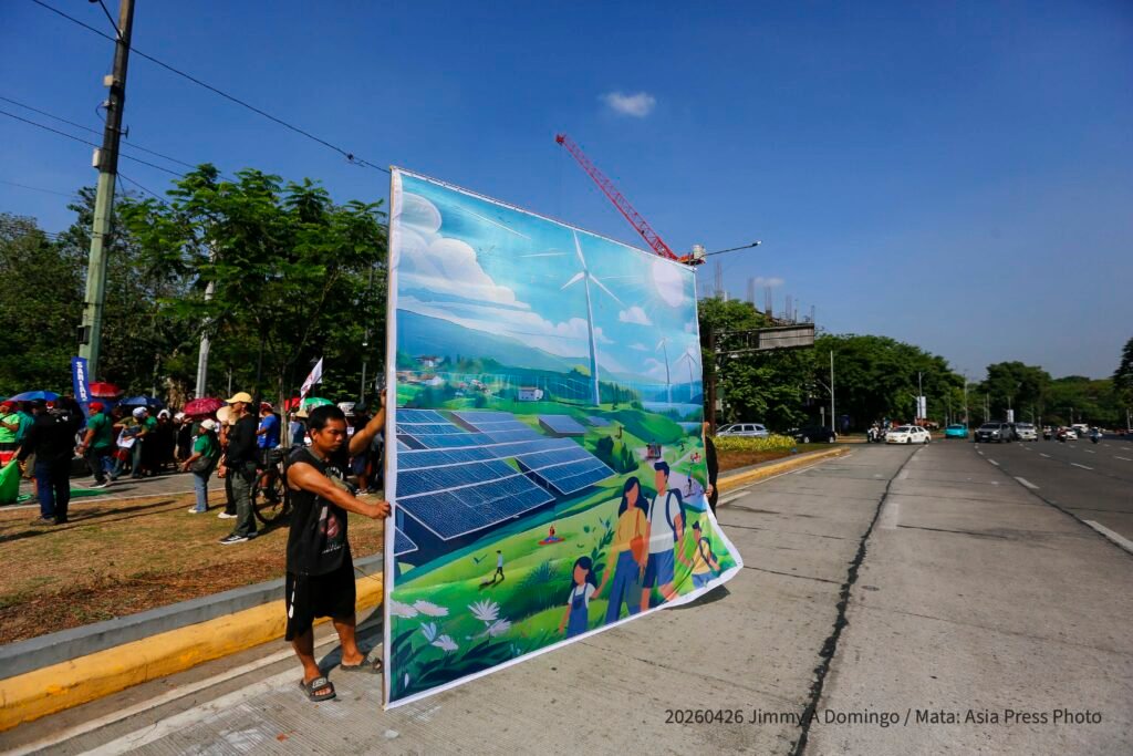 Filipino climate and social justice groups rallied on Elliptical Road, Quezon City on April 26, 2026, joining worldwide protests demanding a rapid, just, and equitable transition to a fossil-free future.