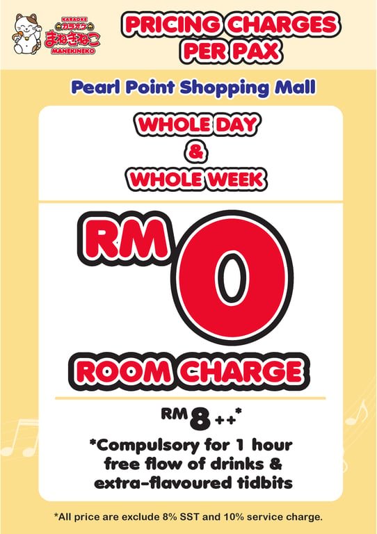 lovers, rejoice! Karaoke Manekineko’s Pearl Point Shopping Mall outlet is now offering a special RM0 room