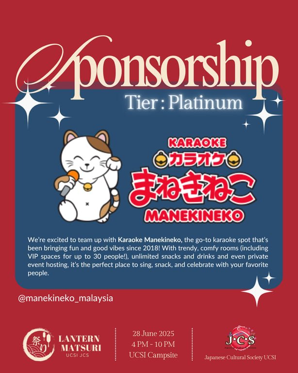 Karaoke Manekineko Malaysia was proud to join the vibrant Japanese cultural celebration at UCSI Lantern Matsuri 2025 as a Platinum Sponsor. From fireworks to festive vibes, here’s a look back at the unforgettable evening filled with culture, community, and karaoke joy!