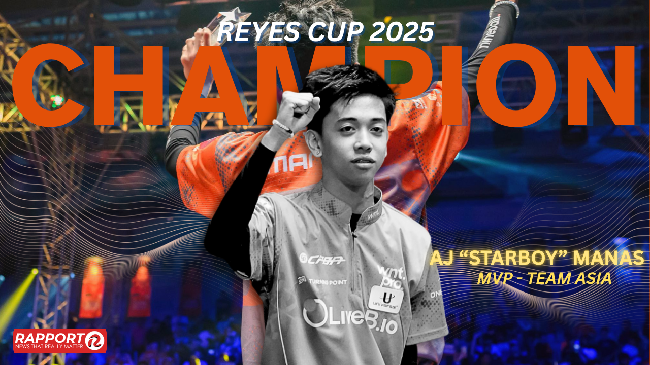 Manila, Philippines — Rising Filipino cue artist AJ “Starboy” Manas emerged as the brightest star of the 2025 Reyes Cup, earning the Most Valuable Player (MVP) award in his debut appearance as he led Team Asia to a commanding 11–3 victory over Team Rest of the World at the Ninoy Aquino Stadium in Manila.